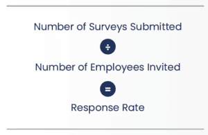 One of the first key metrics analyzed within any employee survey is the response rate. Response rates are calculated by the number of surveys submitted divided by the number of employees invited to participate in a given survey.