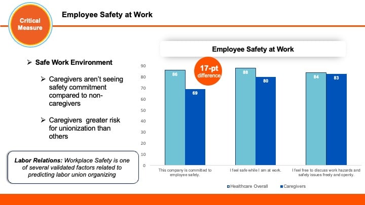 Safety, both physical and psychological, is paramount in healthcare. Caregivers need to feel safe at work and confident that their concerns will be addressed. Ensuring a safe working environment can reduce the risk of unionization by addressing key factors driving caregivers to seek collective bargaining solutions. Proactive safety measures can lead to a more stable and satisfied workforce where caregivers feel protected and valued.
